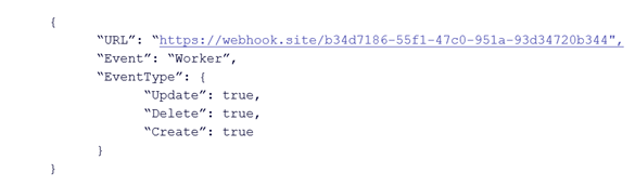A webhook is a user-defined Hypertext Transfer Protocol (HTTP) call-back that is triggered when a particular event occurs at the source site. When the event occurs, the source site makes a HTTP request to the URL specified in the subscription.